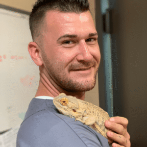 Brandon began working at a local veterinary clinic while still in high school, starting with cleaning kennels. Over time, he worked his way up and gained hands-on experience in all aspects of the clinic, including both small- and large-animal care. That early start gave him a strong foundation and a deep understanding of the field.